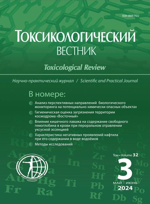 Материал и методы. Использованы доступные научные публикации, методические указания Федеральной службы по надзору в сфере защиты прав потребителей и благополучия человека, материалы Федерального регистра потенциально опасных химических и биологических веществ (РПОХБВ) и зарубежные методические документы, в частности Агентства по токсичным веществам и регистру заболеваний (Agency for Toxic Substances and Disease Registry, США).
