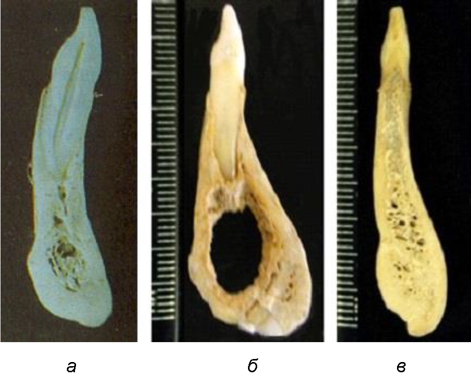 Проводились измерения на 19 нативных препаратах зубочелюстных сегментов резцов нижней челюсти и их рентгенограммах для возможности последующего сравнительного анализа с данными телерентгенографии и конусно-лучевой томографии. На архивном материале кафедры проводился анализ 36 ТРГ с признаками физиологической окклюзии и 28 рентгенограмм с патологическими вариантами окклюзии, при которых выявлены формы подбородочного выступа, размеры которого отличались от среднестатистических показателей как по вертикали, так и по сагиттали. Исследование проводилось в соответствии с принципами биоэтики и информированного согласия пациентов, одобренного Локальным Этическим Комитетом (справка № 2020/039).