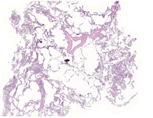Рис.3. Гистологические признаки расширения альвеолярных ходов и альвеол