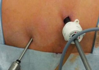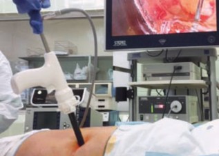 Рис. 1. Вхождение в свободную брюшную полость в левом подреберье с помощью оптического троакара «Visiport™» (Covidien).