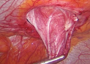 Рис. 5. Перемещение грыжевого мешка в брюшную полость с целью ликвидации грыжевой полости.