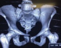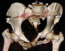 Рис. 1. КТ тазового кольца с 3Д реконструкцией пациента, до операции
