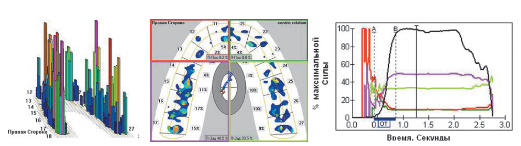 Рис. 2. Картины компьютерного анализа окклюзии на аппарате «T-scan III».