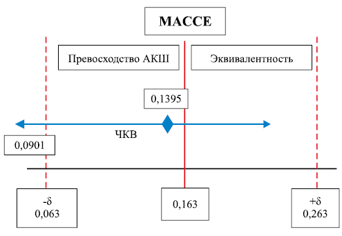 Рис. Результаты статистического анализа по критериям non-inferiority по частоте событий MACCE между группами ЧКВ и АКШ