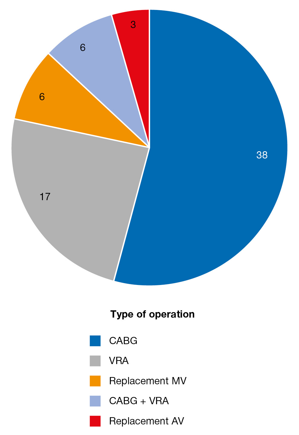 Note: CABG — coronary artery bypass grafting; VRA — videothoracoscopic radiofrequency ablation; MV — mitral valve; AV — aortic valve.