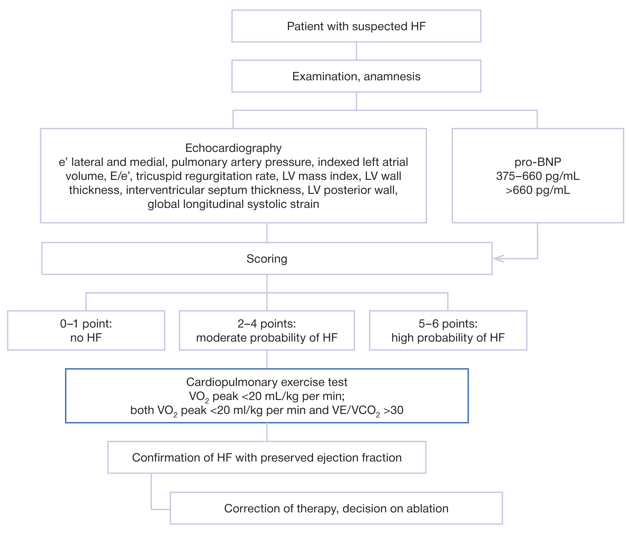 Fig. 1. Diagnostic algorithm of heart failure with preserved ejection fraction in patients with atrial fibrillation. CH — heart failure.
