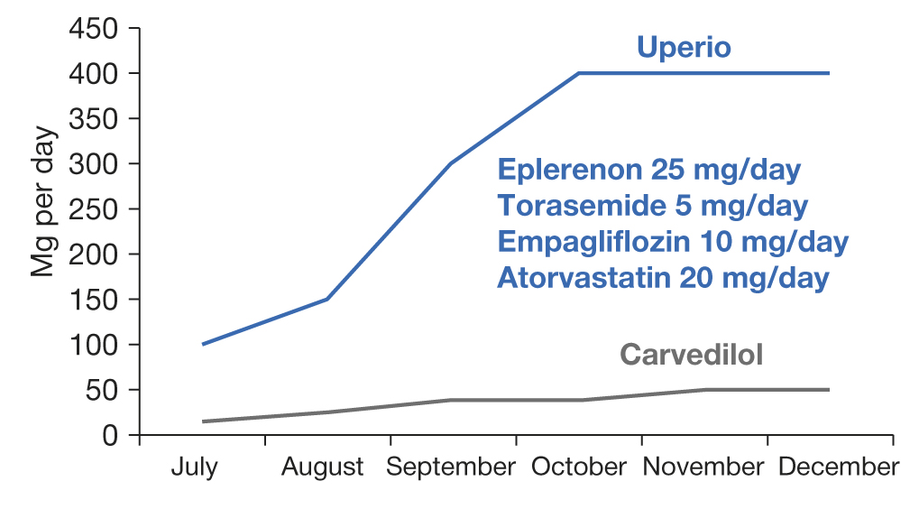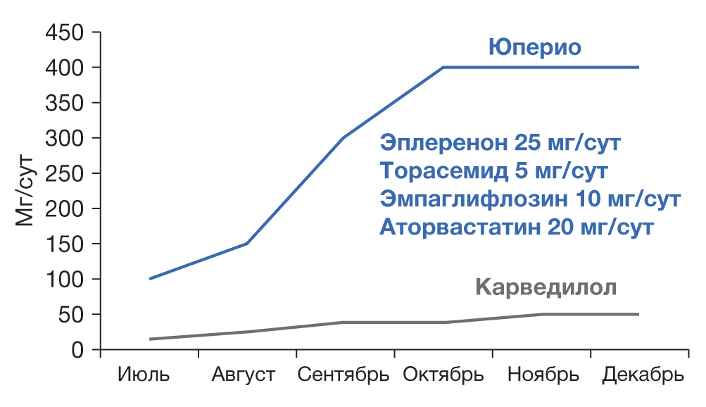 Fig. 1. Doses and duration of cardioprotective therapy in patient K.