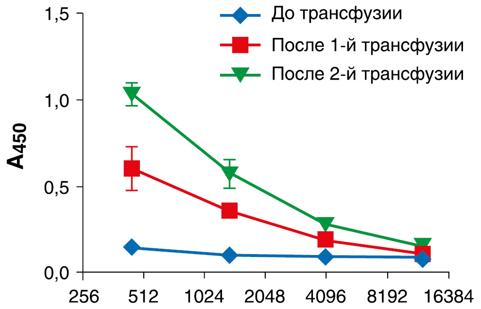Высокий титр вируснейтрализующих антител наблюдается далеко не у всех, кто перенес COVID-19 [6; собственные данные], хотя в целом иммунный ответ на SARS-CoV-2 вполне активный: к 15-му дню заболевания у подавляющего большинства пациентов присутствуют IgM и IgG (у 94,3 и 79,8% заболевших соответственно) [9].