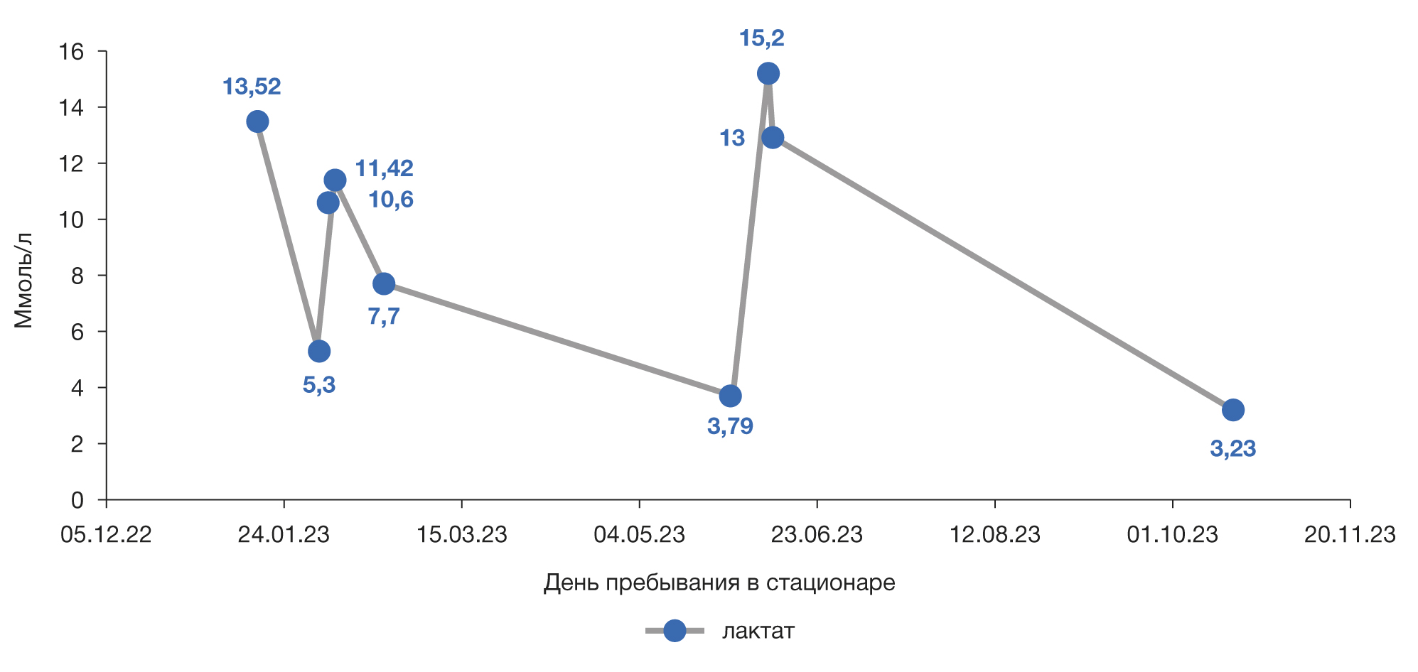 Рис. 2. Показатели лактатдегидрогеназы за время наблюдения пациента