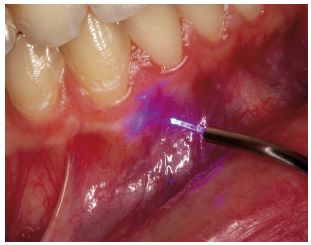Currently, the list of diode semiconductor lasers available for use in dental practice is extended by the inclusion of the medical blue laser with a radiation wavelength of 445±40 nm. All over the world, the manufacturers of blue lasers claim this technology as being the best for surgical preparation of the soft tissues, for the radiation with a wavelength of 445±40 nm is to a greater extent absorbed by hemoglobin, oxyhemoglobin and melanin comparing to the laser radiation of the infrared spectrum [13, 14]. In clinical practice, dental lasers of the infrared range are used both for laser surgery and for laser therapy. The topical issue is the capabilities of using laser radiation with a wavelength of 445 nm for LLLT of the mucosa in the oral cavity with a perspective of an addition of this manipulation into the set of therapeutic procedures used in cases of inflammatory diseases of the parodontal tissues.