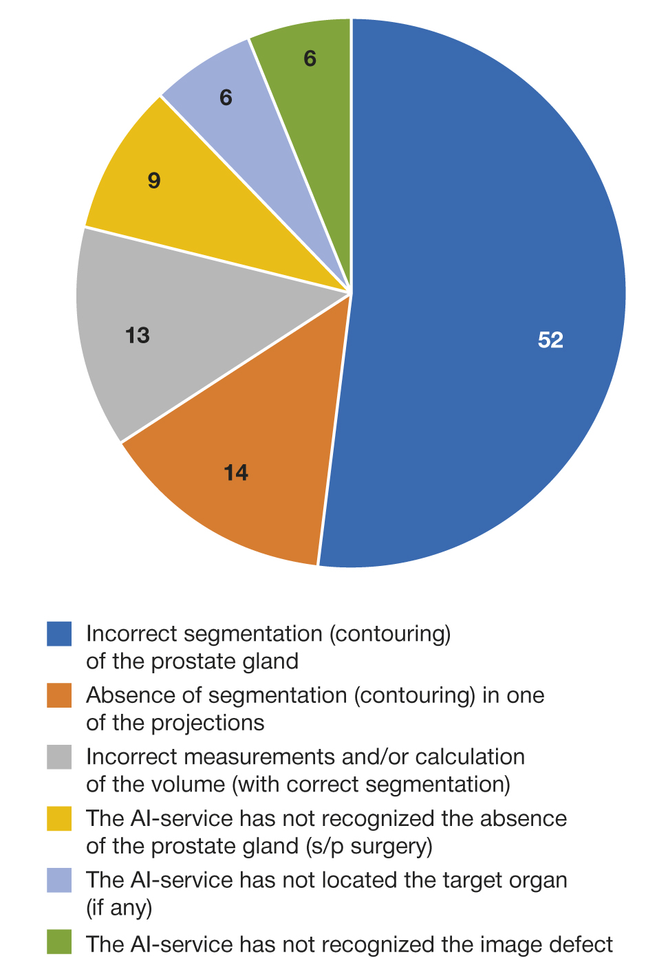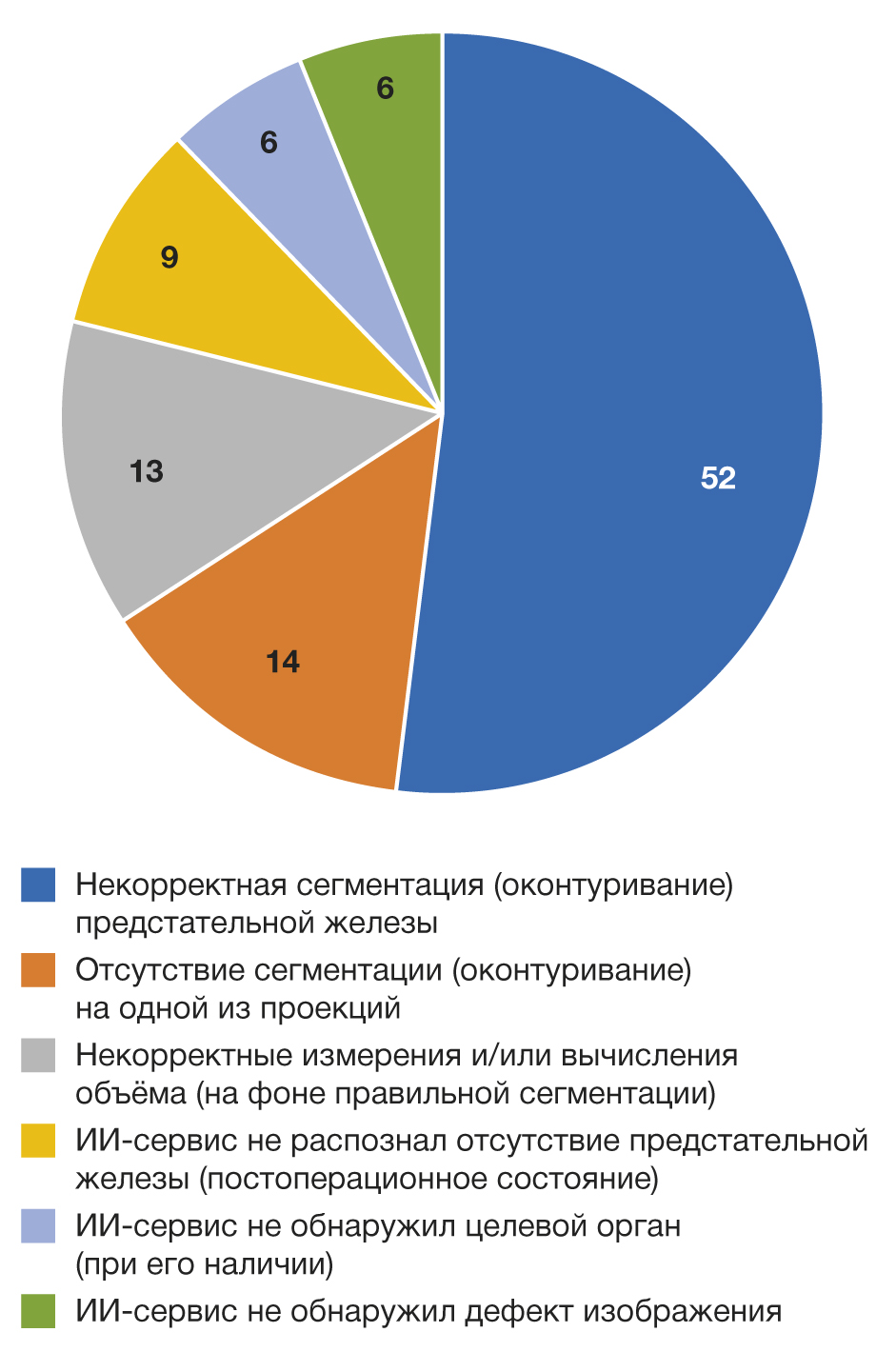 Fig. 1. The structure of incorrect or erroneous operation of the AI-service during the morphometry of the prostate gland on the results of magnetic resonance imaging, %.