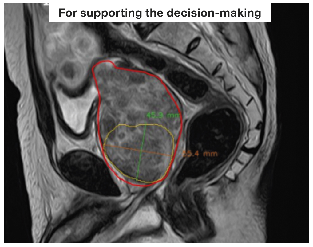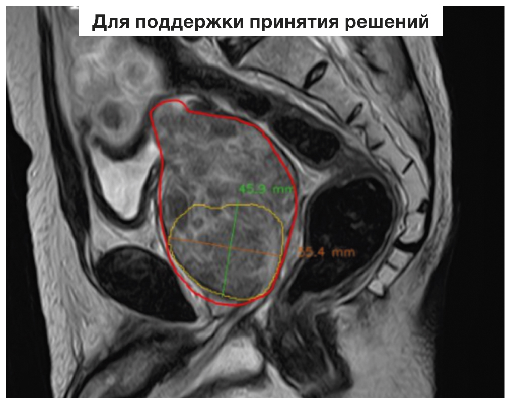 With a background of the colossal interest in using AI in radiodiagnostics, the challenges of automated analysis of the results of the lesser pelvis MRI are practically not researched. In particular, not so long ago, approximately 11 AI-based developments were published for analyzing the results of the prostate gland MRI. None of them is intended for direct helping the physician by means of the automatization of the routine mechanical procedure of measuring the target organ, though the developers are trying, mainly with no success, to solve the hardest challenges of differential diagnostics. Another substantial defect is that all these developments were tested only retrospectively or in the contest mode (competing with each other), i.e. the verification and evaluation of accuracy in the real clinical settings were not implemented [14, 15].
