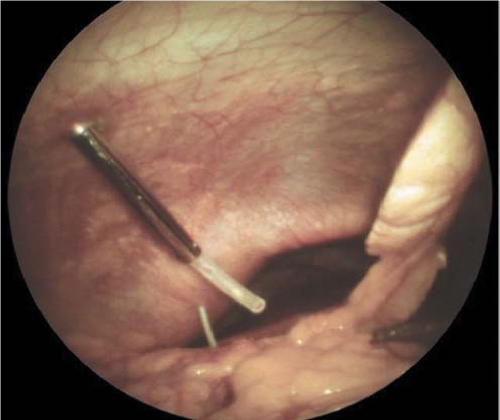 Рис. 2. Лапароскопическое Дренирование желчного пузыря и брюшной полости при ПН.