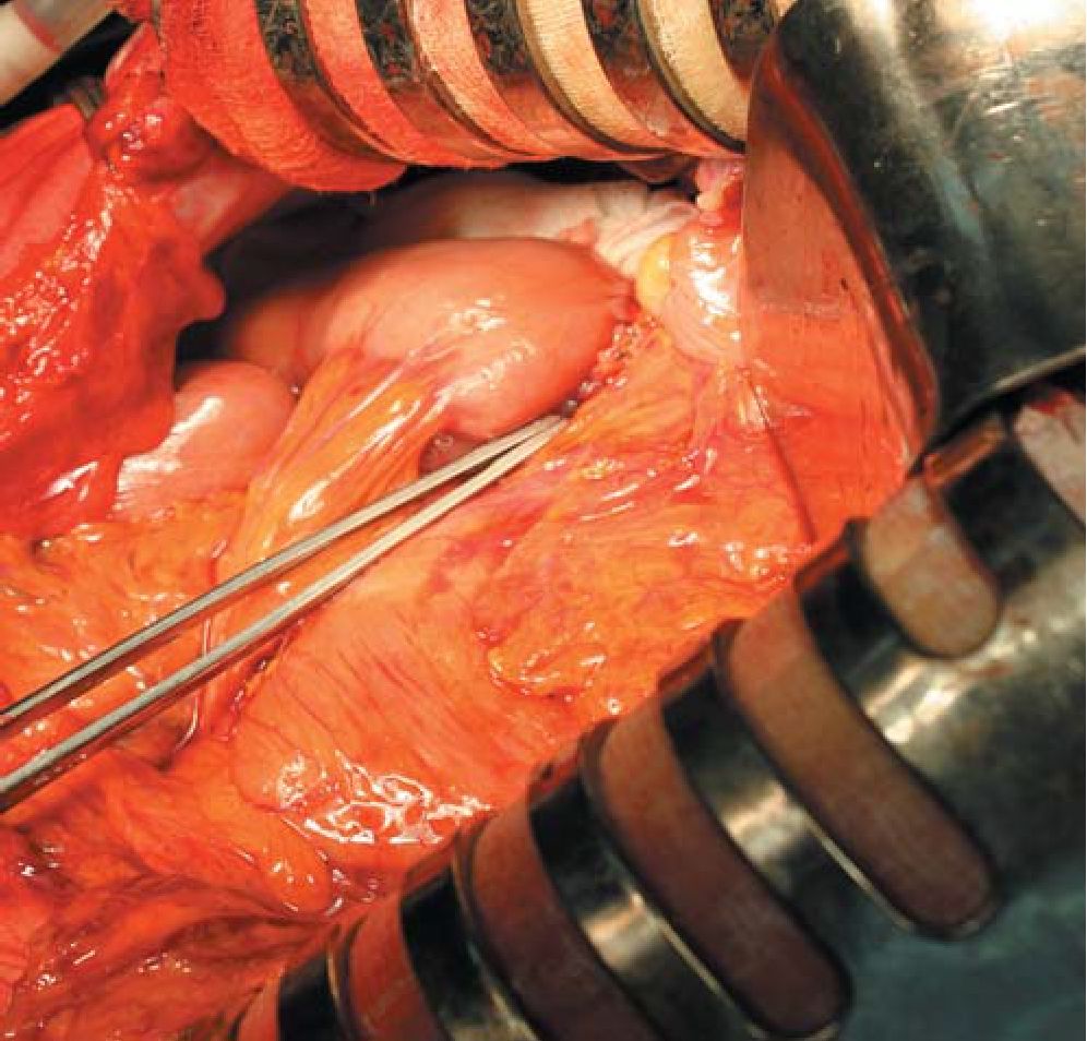 Рис. 5. Общий вид наложенного холедохо-еюно анастомоза на атключенной по Ру петле тощей кишки.