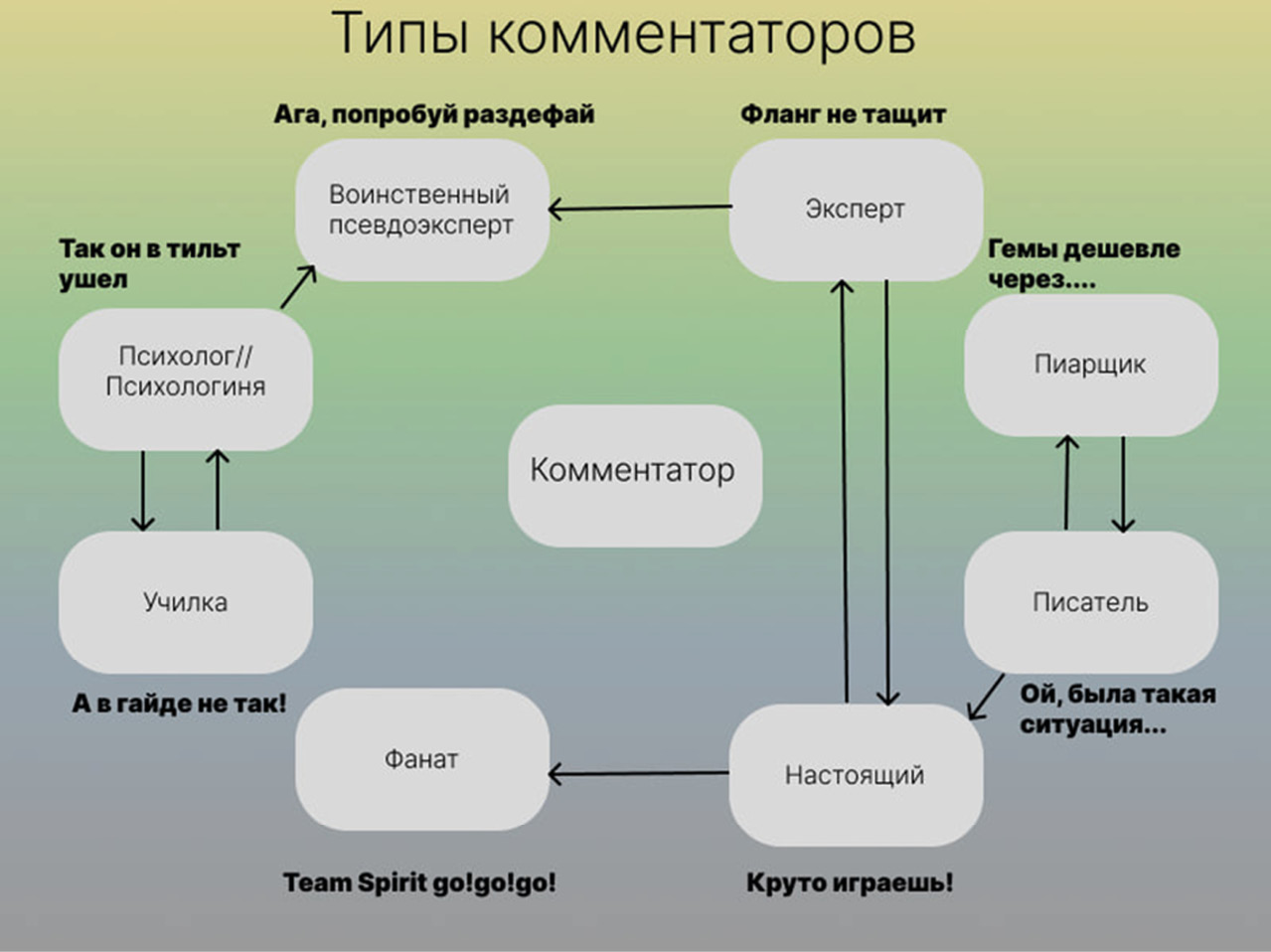 Рис. 1. Типы комментаторов в киберспортивном пространстве