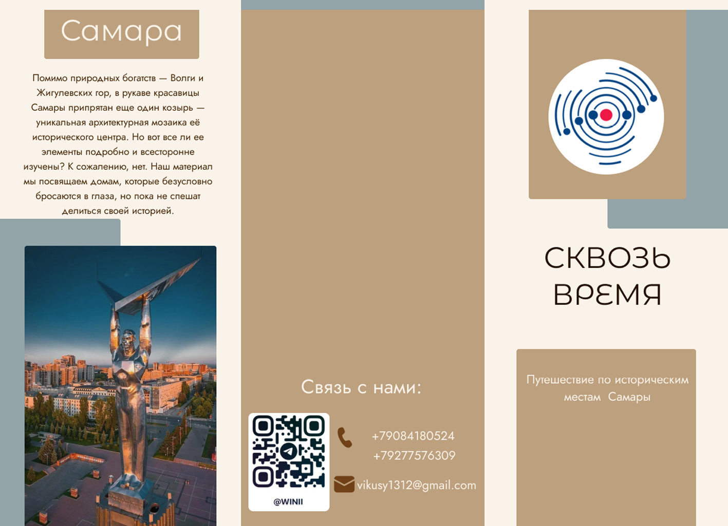 Разработка буклета туристического маршрута «Сквозь время» с целью популяризации культурного наследия г. Самары