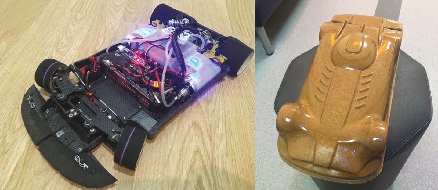 С помощью данных программ удалось провести все необходимые расчеты аэродинамики, центра тяжести, статических и динамических нагрузок. Для изготовления применялись технологии 3D-фрезеровки, вакуумной формовки, 3D-печати (рис. 2).