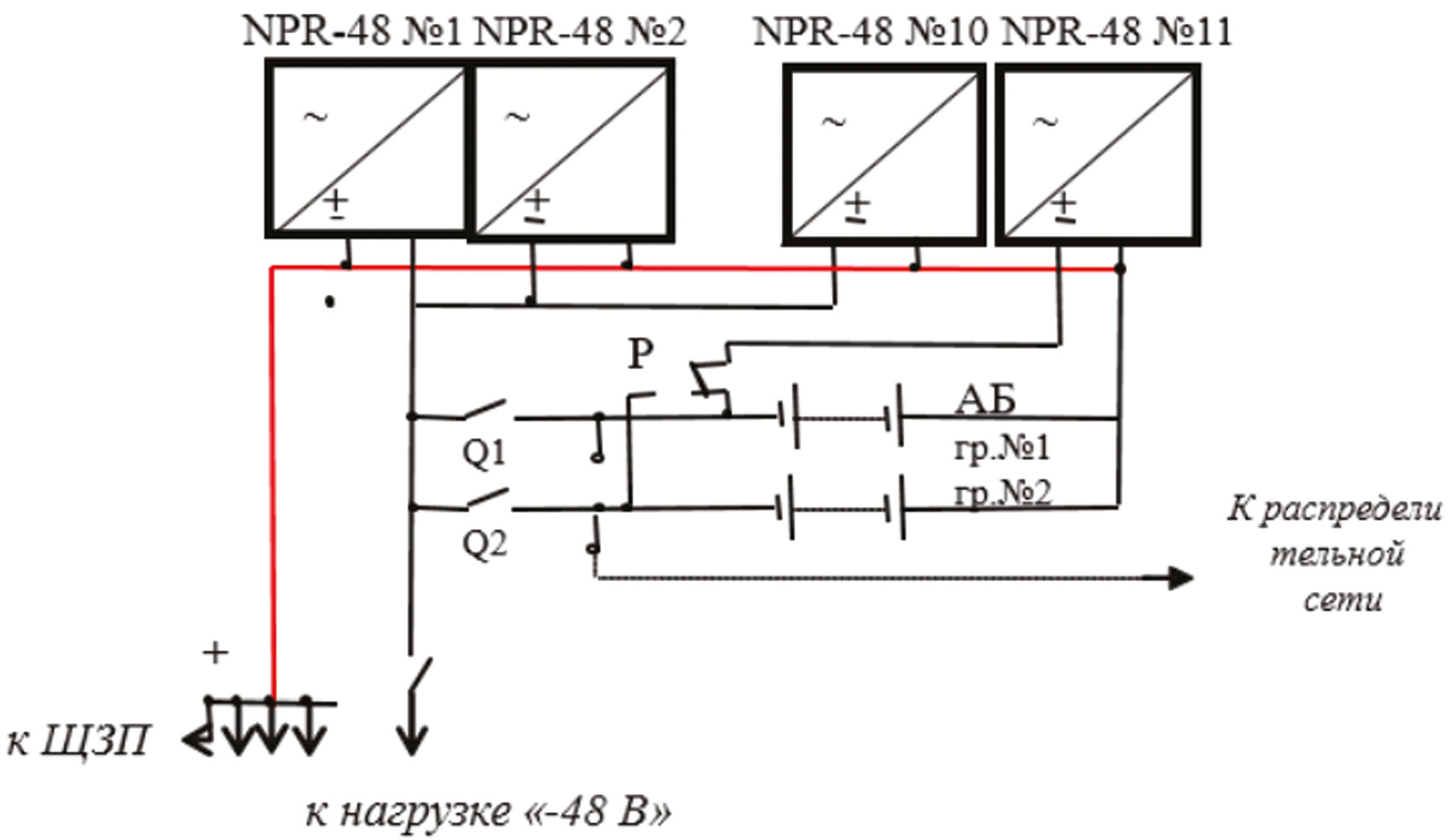 Рис. 1. Схема подключения нагрузки в ЭПУ-48